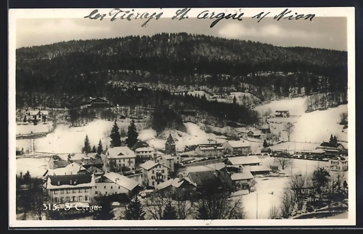 AK St. Cergue, Ortsansicht mit Kirche im Winter