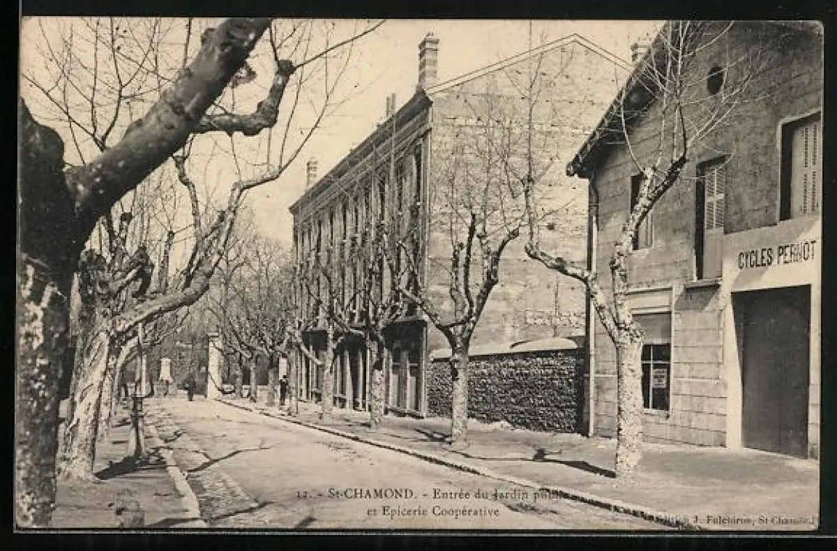 AK St-Chamond, Entrée du jardin public et Épicerie Coopérative