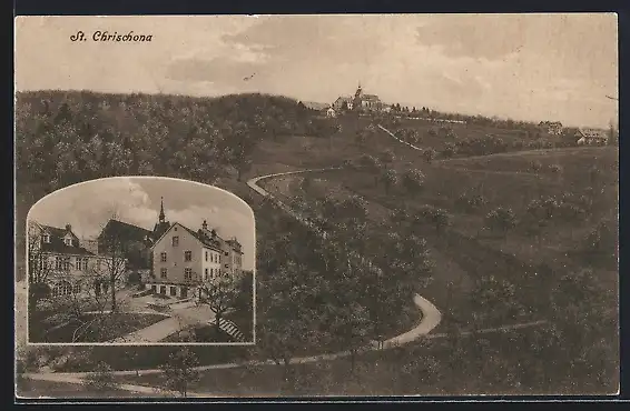 AK St. Chrischona, Strassenpartie und Gesamtansicht von Weitem