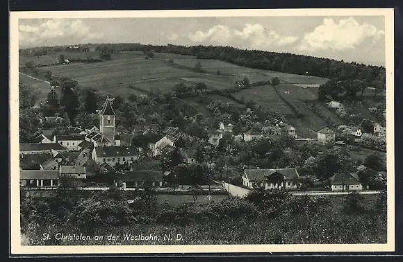 AK St. Christofen an der Westbahn, Ortsansicht mit Umgebung aus der Vogelschau