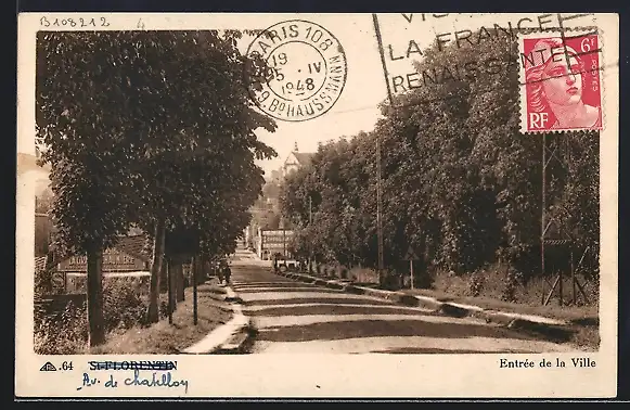 AK St-Florentin, Entrée de la ville avec arbres alignés et route principale