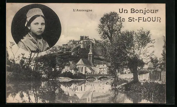 AK St-Flour, Totalansicht mit Mädchen in Tracht
