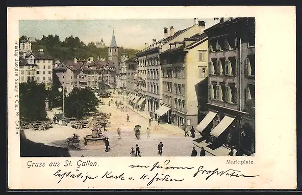 AK St. Gallen, Marktplatz mit Brunnen