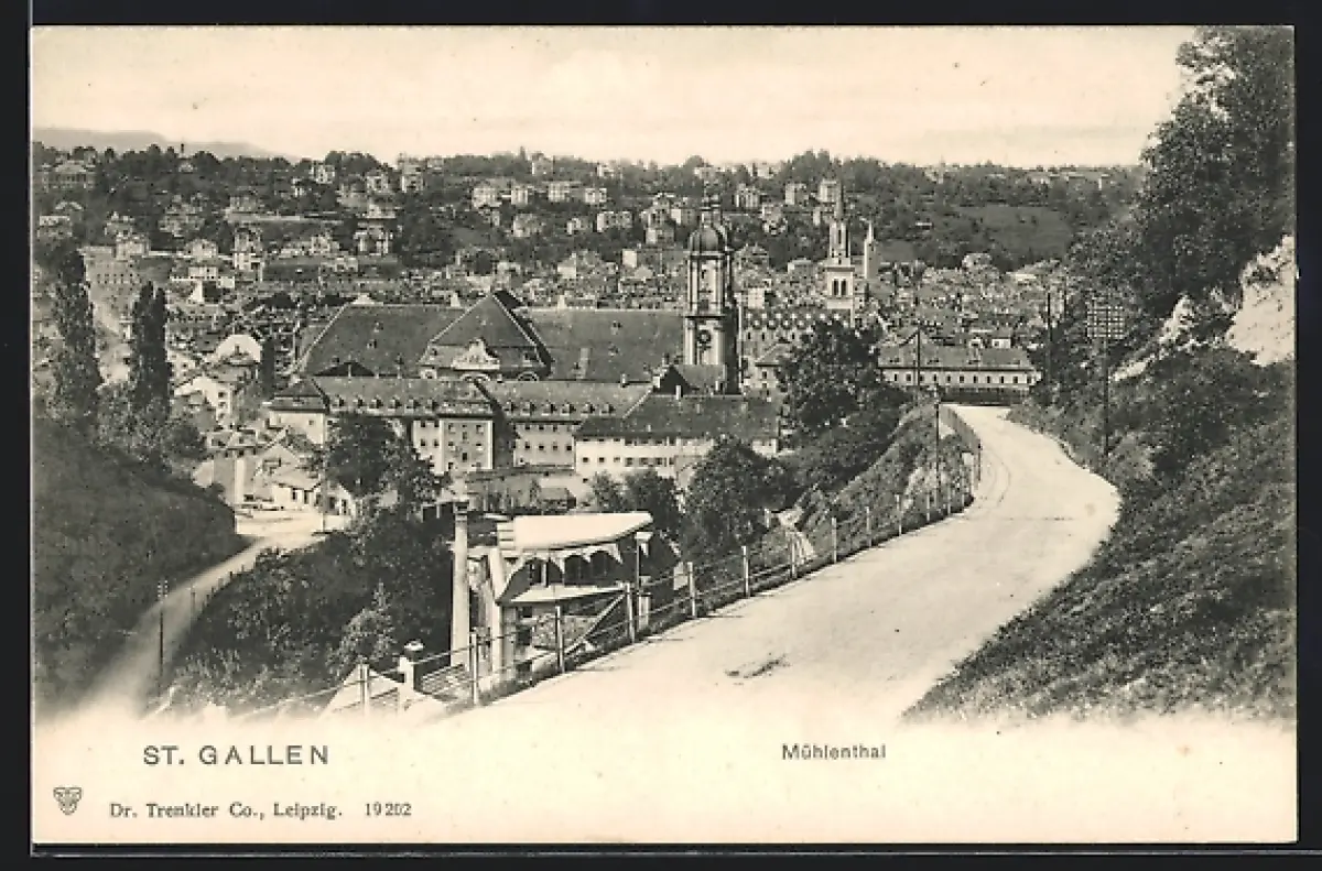 AK St. Gallen, Mühlenthal, Panorama mit Kirche