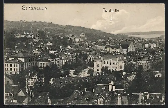AK St. Gallen, Ortsansicht aus der Vogelschau