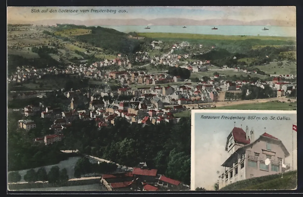 AK St. Gallen, Restaurant Freudenberg, Blick auf den Bodensee
