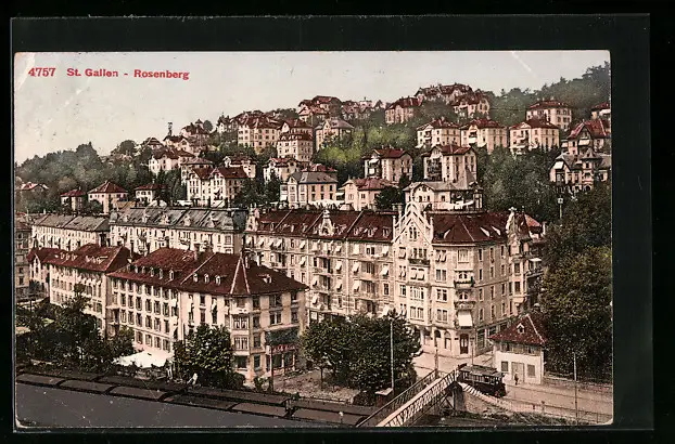 AK St. Gallen, Rosenberg mit Strassenbahn