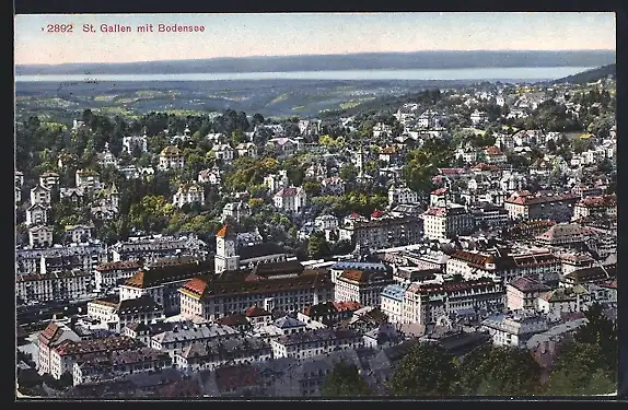 AK St. Gallen, Teilansicht mit Bodensee