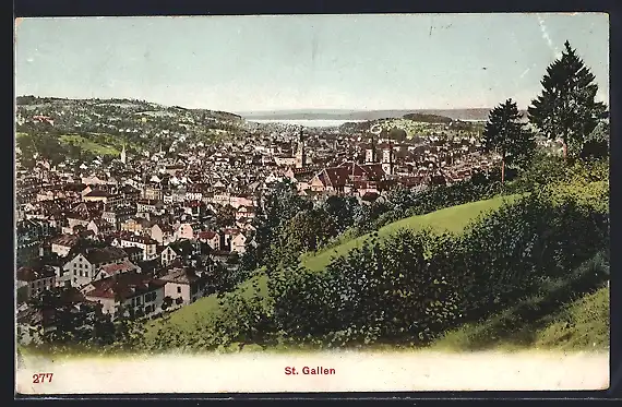 AK St. Gallen, Teilansicht mit Kirche