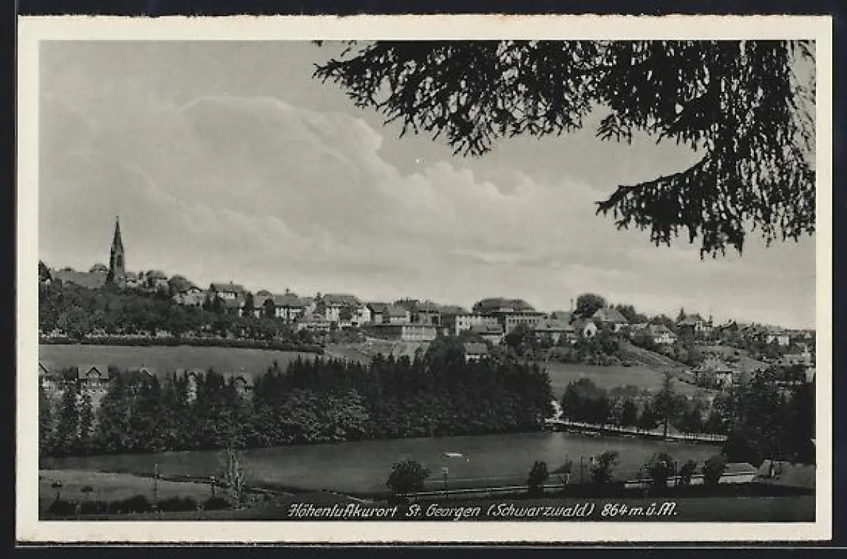 AK St. Georgen /Schwarzwald, Gesamtansicht, Kirche, Landschaft