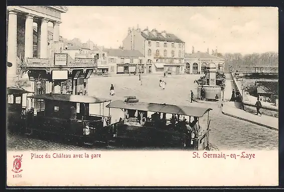 AK St. Germain-en-Laye, Place du Chateau avec la gare
