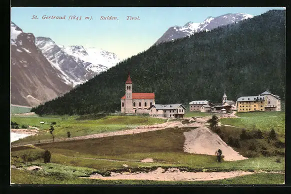 AK St. Gertraud in Sulden, Totale mit Kirche