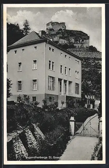 AK St. Goar, Jugendherberge mit Burg Rheinfels