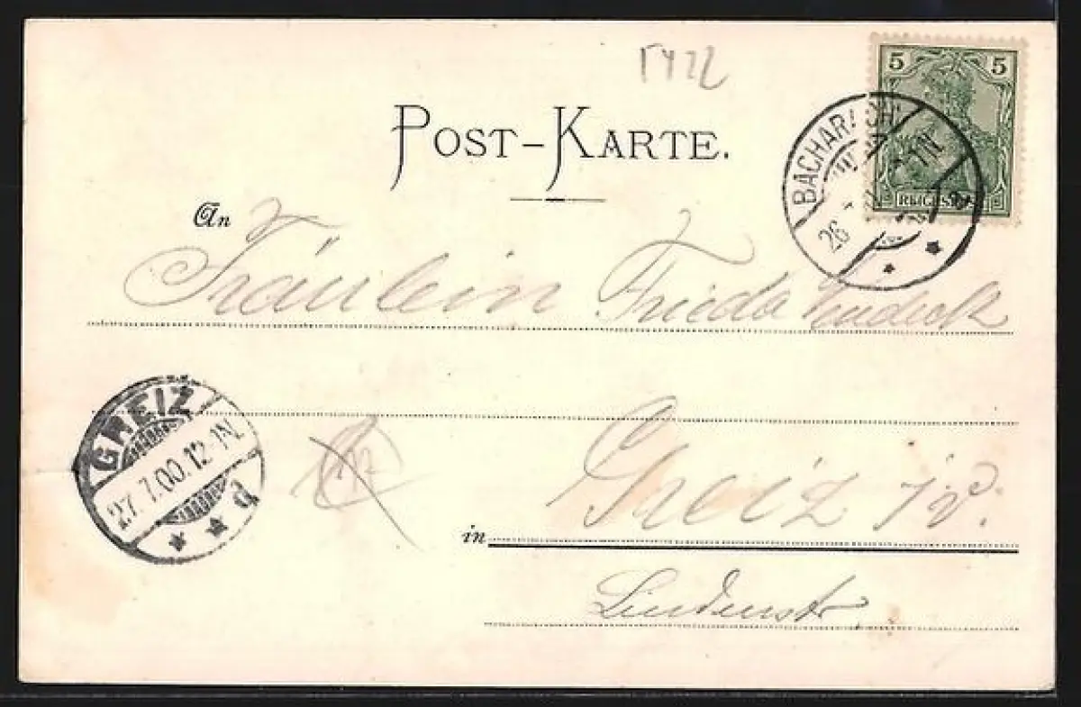 alte Ansichtskarte, gelaufen 1900, Stempelspur, guter Zustand