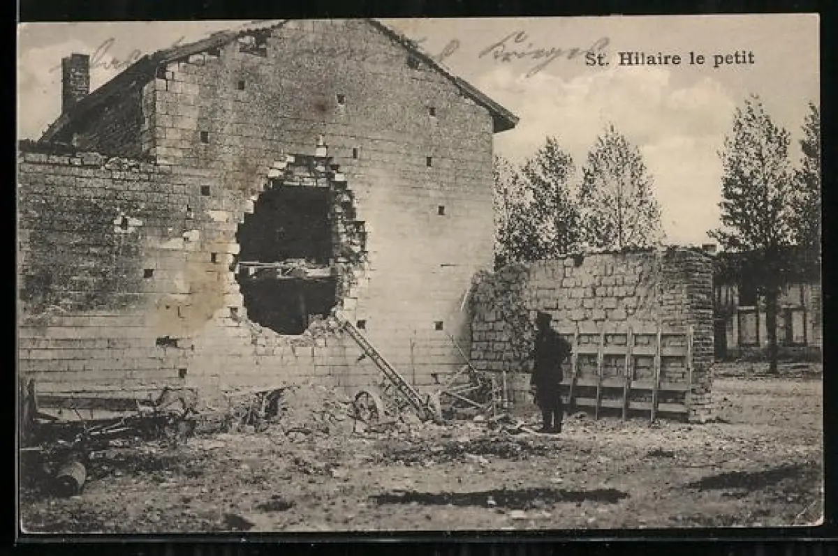 AK St. Hilaire le petit, Ortspartie mit zerstörtem Haus