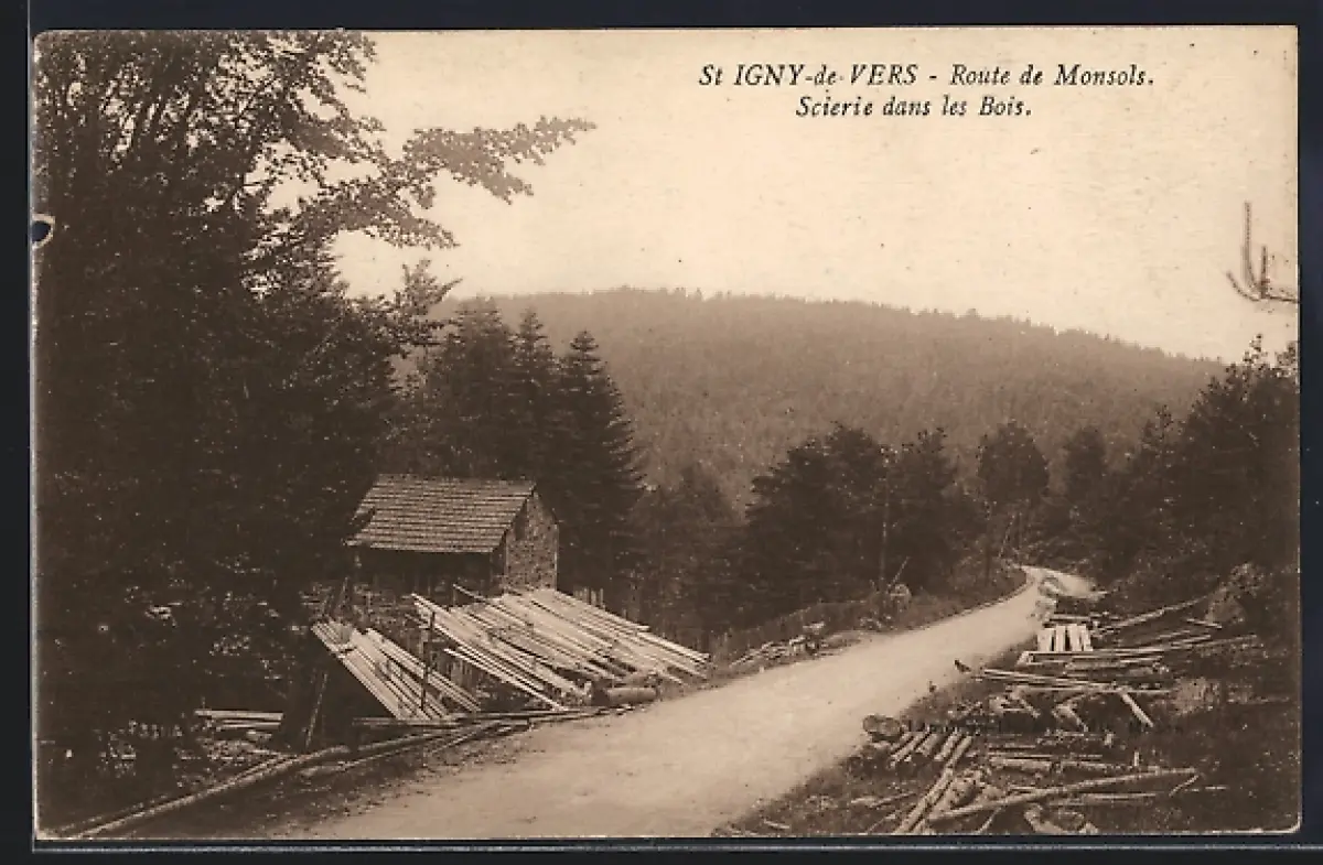 AK St Igny-de-Vers, Scierie dans les bois sur la route de Monsols