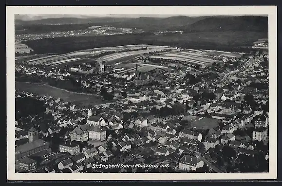 AK St. Ingbert /Saar, Ortsansicht mit Kirche von Flugzeug aus
