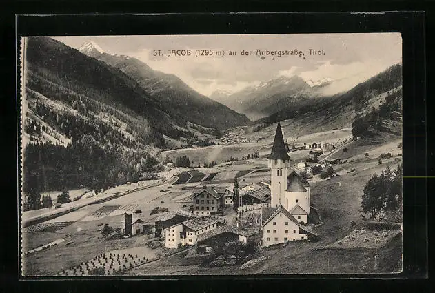 AK St. Jacob an der Arlbergstrasse, Teilansicht mit Kirche