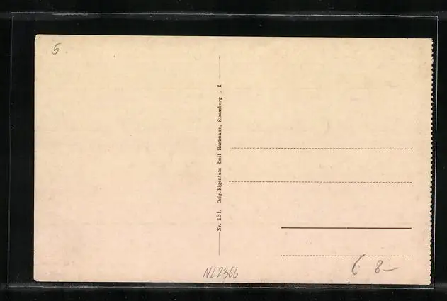 Personenbezogene Daten auf der Rückseite der Karte wurden durch blauen Textmarker unkenntlich gemacht. Die blauen Stellen sind auf die Vorderseite durchgeweicht und wirken sich negativ auf das Postkartenfoto aus