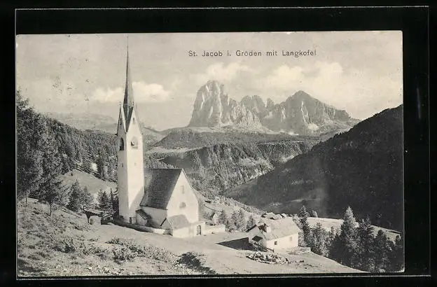 AK St. Jacob in Gröden, Ortsansicht mit Langkofel