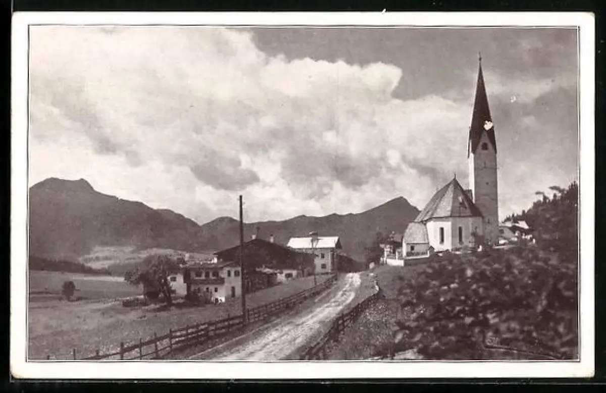 AK St. Jakob am Pillersee, Ortspartie mit Kirche