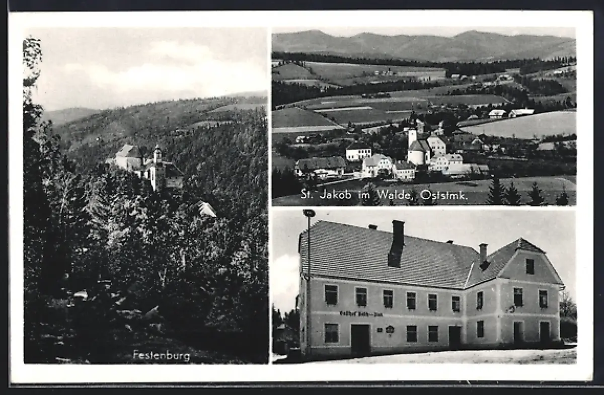 AK St. Jakob i. Walde, Panoramaansicht, Festenburg