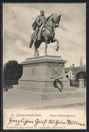 AK St. Johann-Saarbrücken, Kaiser-Wilhelm-Denkmal mit Blumenkranz