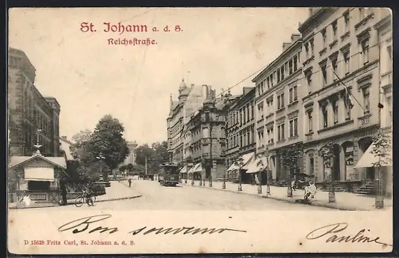 AK St. Johann a. d. S., Reichsstrasse mit Geschäften