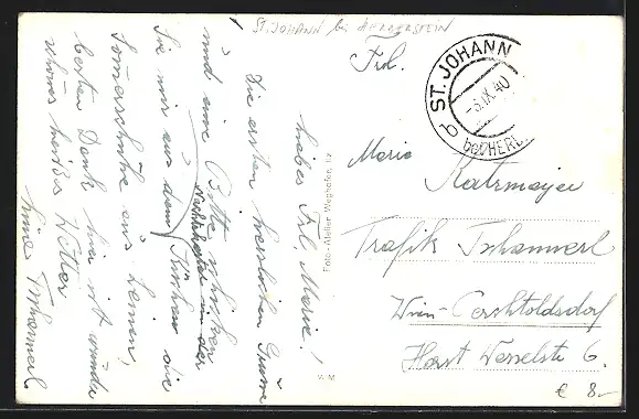 alte Ansichtskarte, gelaufen 1940, Briefmarke entfernt, guter Zustand