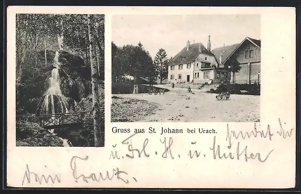 AK St. Johann bei Urach, Ortspartie und Wasserfall
