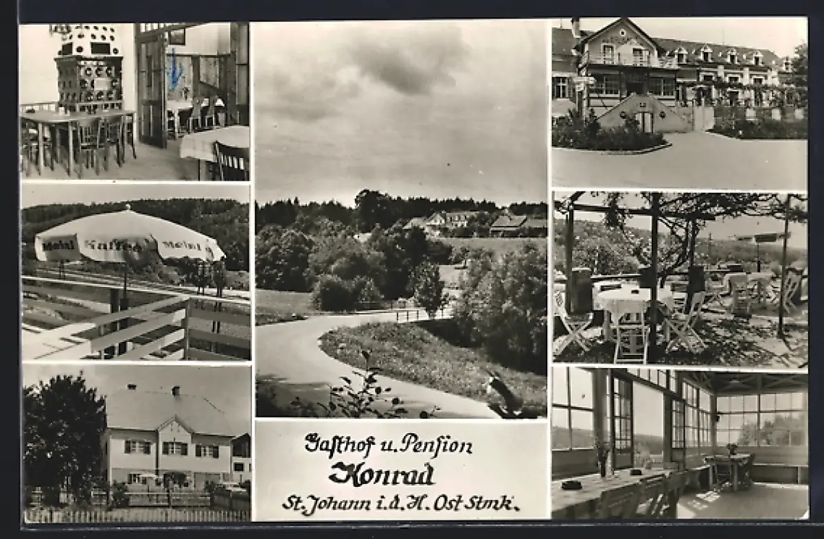 AK St. Johann i. d. H., Gasthof und Pension Konrad, Aussen- u. Innenaufnahmen