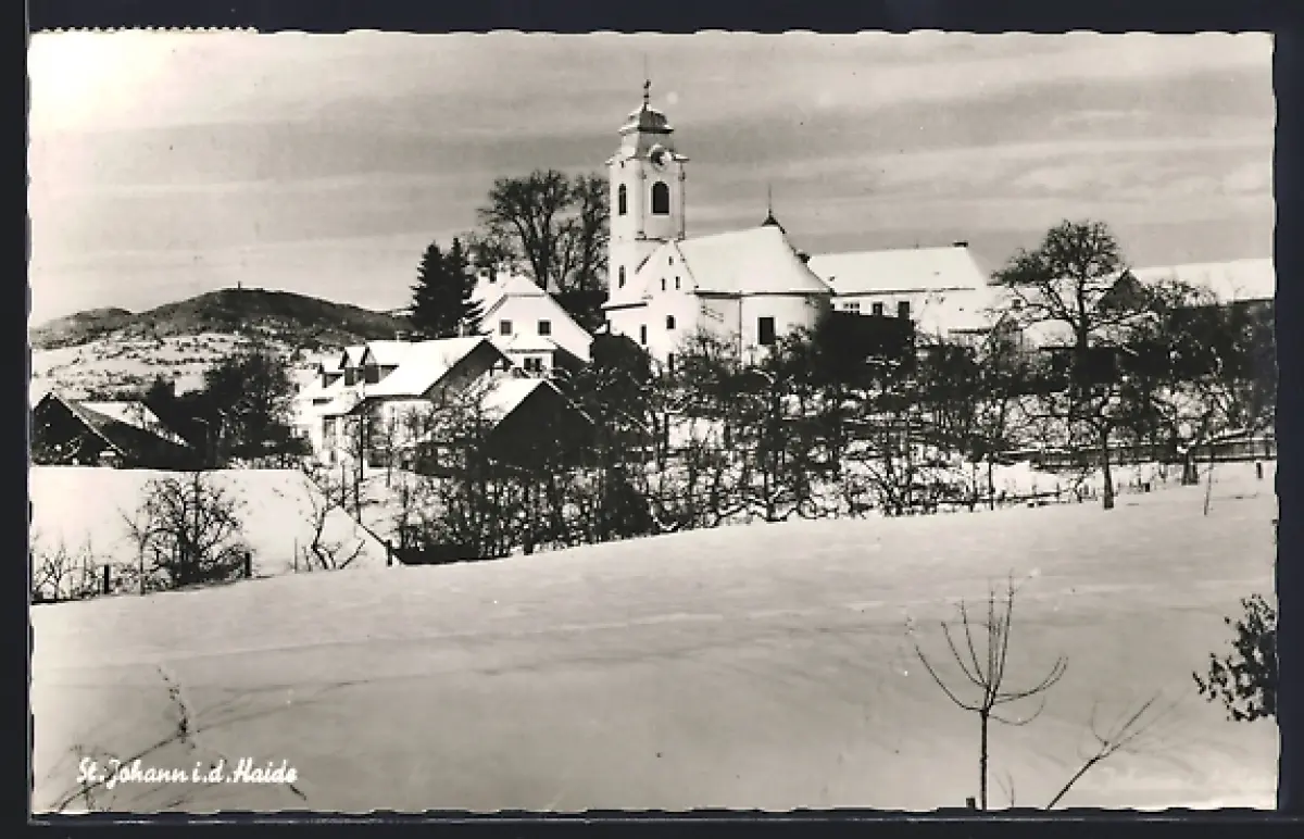 AK St. Johann i. d. Haide, Ortsansicht im Winter von der Feldflur aus