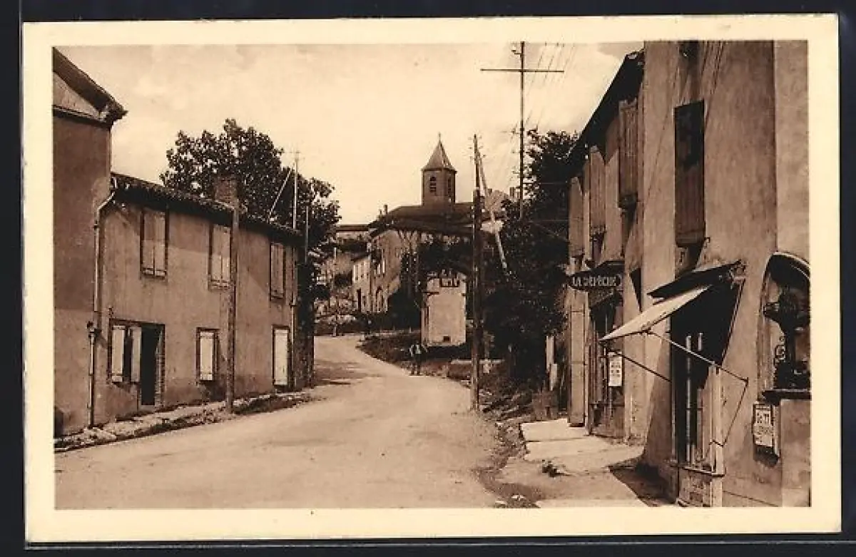 AK St-Juéry /Tarn, Côte de St-Juéry-le-Haut avec rue principale et église en arrière-plan