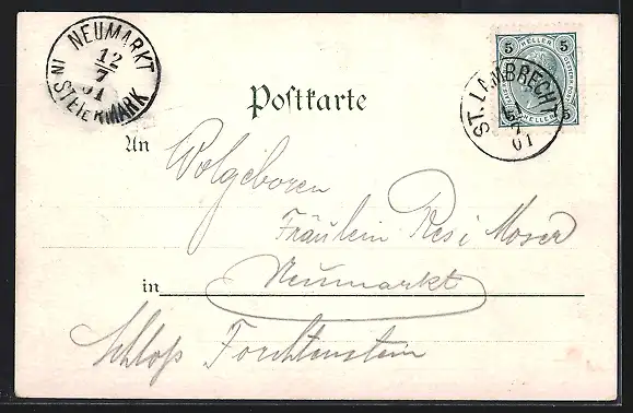 alte Ansichtskarte, gelaufen 1901, guter Zustand