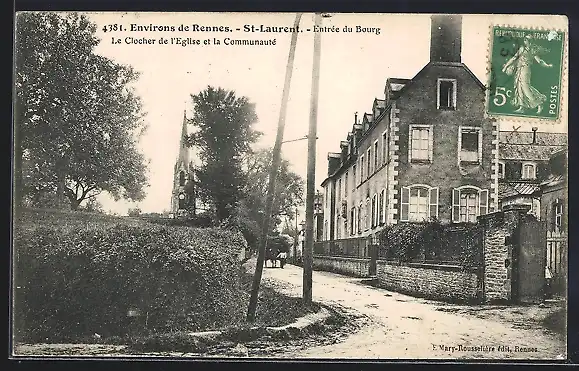 AK St-Laurent, Entrée du bourg, le clocher de l`eglise et la communaute
