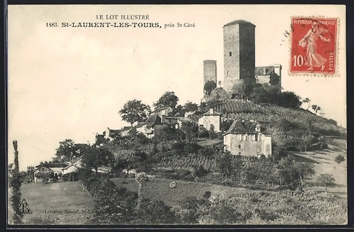 AK St-Laurent-les-Tours, Vue du village et des tours fortifiées sur la colline