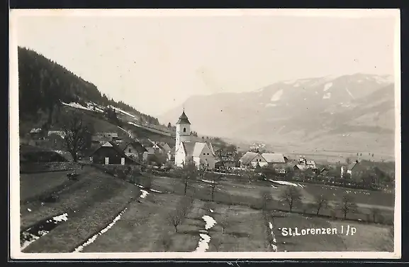 AK St. Lorenzen, Ortsansicht mit zentraler Kirche