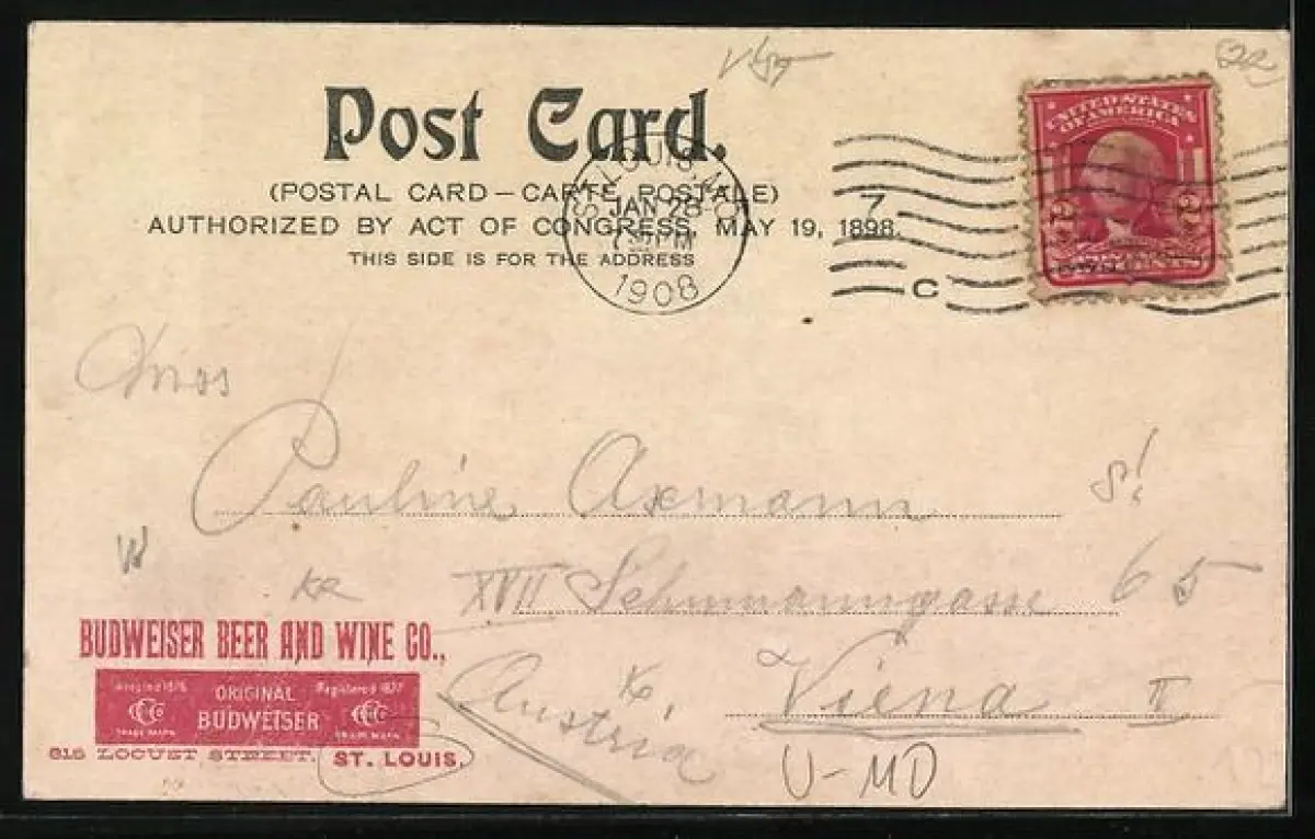 alte Ansichtskarte, gelaufen 1908, sehr kl. Einriss re. unten