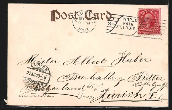 gelaufen 1903, Stempelspur, Einriss li. oben, Kleberest li. oben, guter Zustand