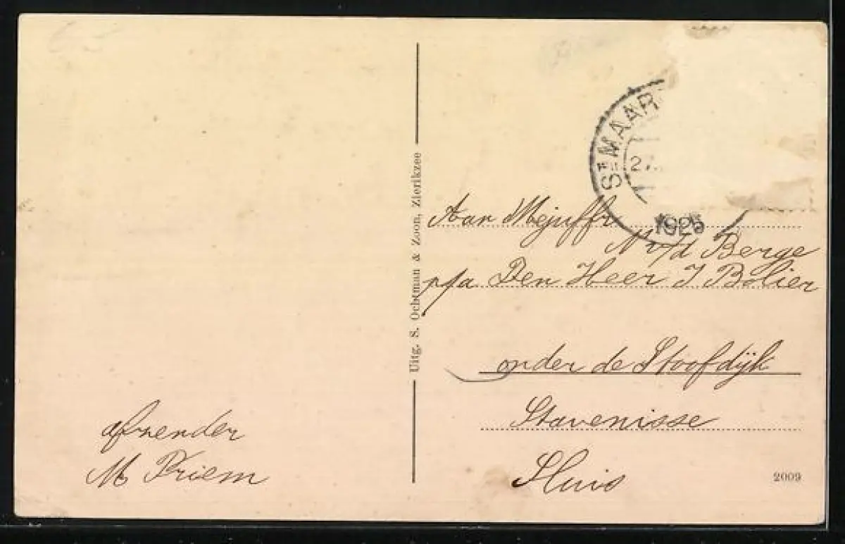 alte Ansichtskarte, gelaufen, Briefmarke entfernt, rückseitig Oberflächenschaden, Eckknick unten re., guter Zustand
