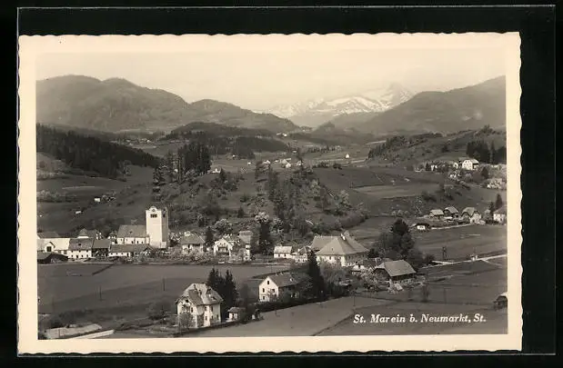 AK St. Marein b. Neumarkt, Totalansicht mit Bergpanorama