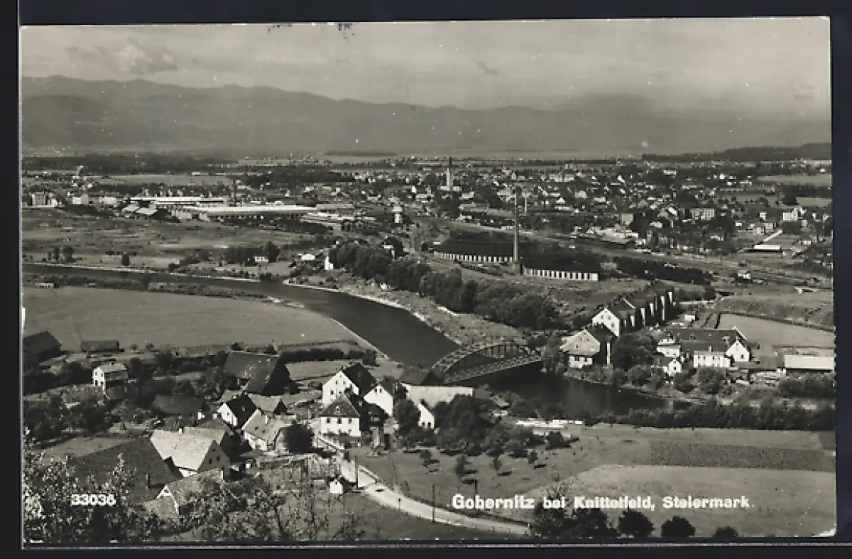 AK St. Margarethen bei Knittelfeld, Gobernitz, Luftbild mit Brücke
