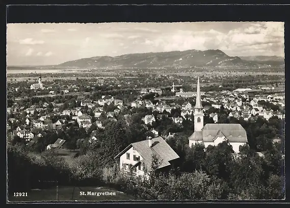 AK St. Margrethen, Gesamtansicht des Ortes mit Kirche