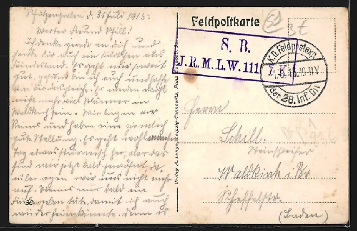 alte Ansichtskarte, gelaufen 1915, Eckknick oben re., guter Zustand