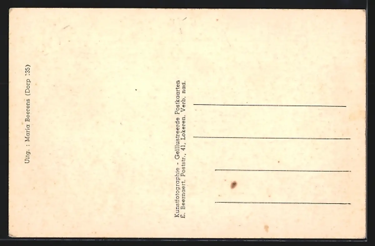 Personenbezogene Daten auf der Rückseite der Karte wurden durch blauen Textmarker unkenntlich gemacht. Die blauen Stellen sind auf die Vorderseite durchgeweicht und wirken sich negativ auf das Postkartenfoto aus