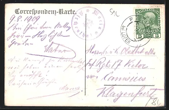alte Ansichtskarte, gelaufen 1909, guter Zustand