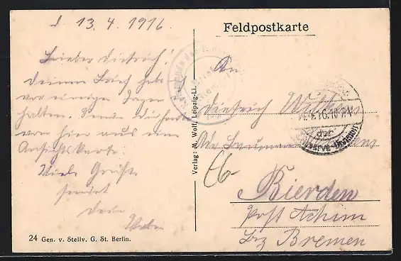 alte Ansichtskarte, gelaufen 1916, guter Zustand