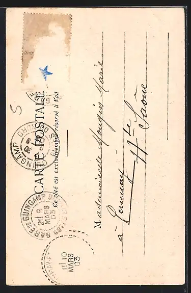 gelaufen 1903, Briefmarke entfernt, Briefmarke entfernt, Eckknick re. oben, guter Zustand