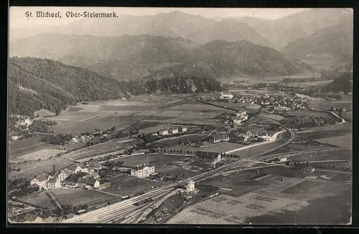 AK St. Michael /Ober-Steiermark, Panorama vom Berg aus