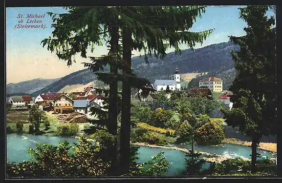 AK St. Michael ob Leoben, Blick übers Wasser auf den Ort